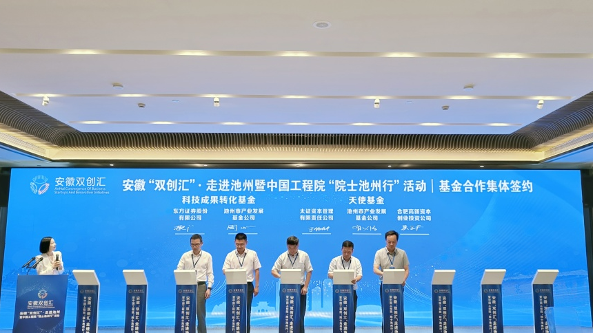 開幕式上首個(gè)重大項(xiàng)目——池州市產(chǎn)業(yè)基金公司與東方證券、太證資本和合高資本進(jìn)行基金合作簽約。本次簽約的池州科技成果轉(zhuǎn)化基金是近年來(lái)池州市首支與省母基金合作的基金項(xiàng)目,同時(shí)池州太證合高股權(quán)投資合伙企業(yè)(有限合伙)(暫定)是池州市首支天使基金。